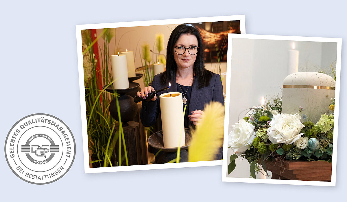 Unser Qualitätsmanagementsystem haben wir bereits im Jahr 2000 eingeführt, und wir entwickeln es immer weiter. 2003 waren wir das erste überregional tätige Bestattungsunternehmen, das nach der DIN EN ISO 9001 auf Grundlage der Bestattungsdienstleistungsnorm DIN EN 15017 zertifiziert wurde.